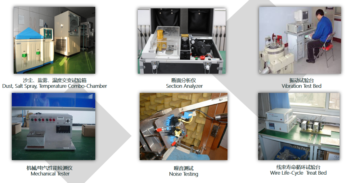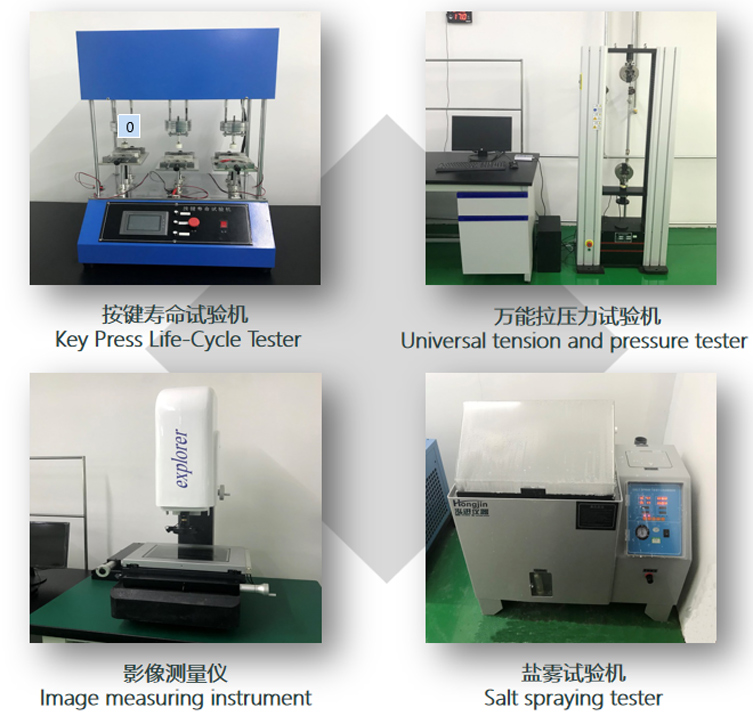 目前,實(shí)驗(yàn)室主要配備有:壽命試驗(yàn)機(jī)、彈簧拉壓力試驗(yàn)機(jī)、萬(wàn)能試驗(yàn)機(jī)、二次元投影測(cè)試儀、鹽霧試驗(yàn)機(jī)、燃燒試驗(yàn)箱、耐壓測(cè)試儀、絕緣電阻測(cè)試儀等設(shè)備,用于測(cè)試?yán)乳_關(guān)總成的使用壽命、接通行程和接通力,產(chǎn)品的耐壓等級(jí)、絕緣電阻值,觸點(diǎn)回彈等試驗(yàn)項(xiàng)目。