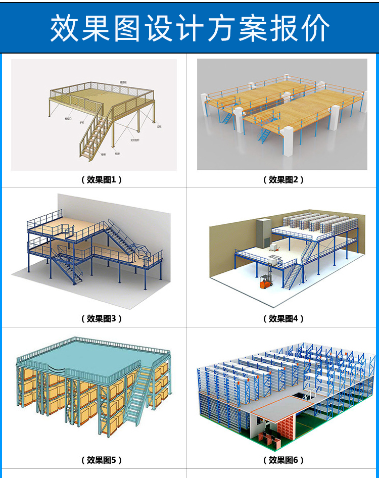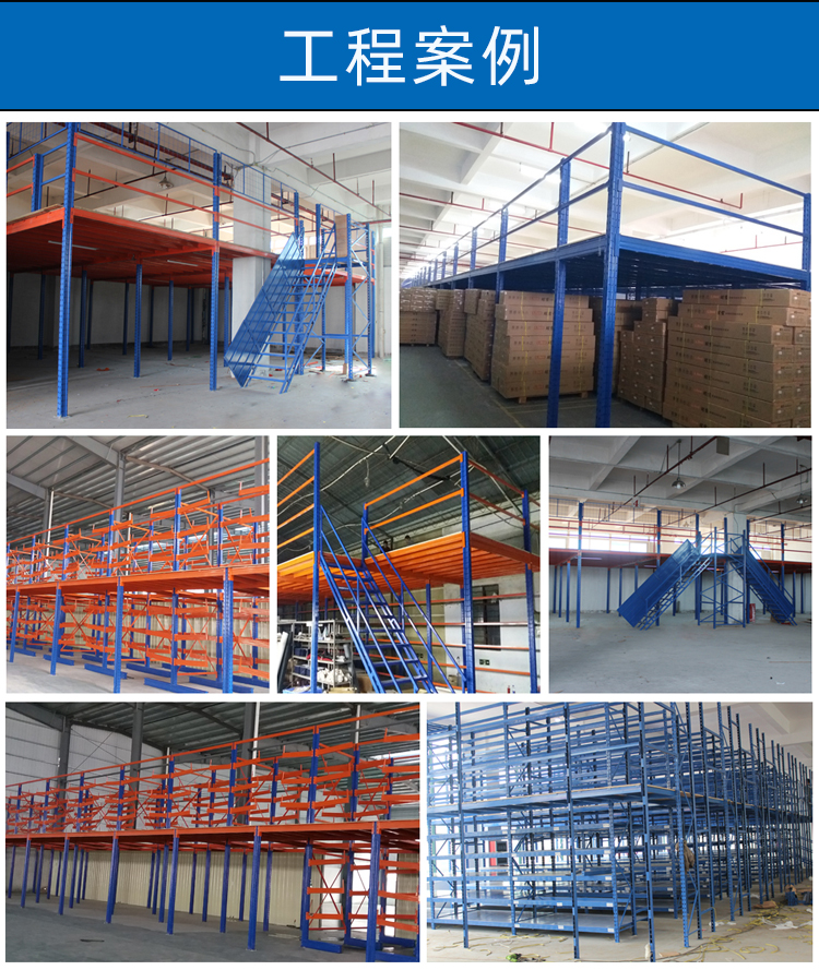 5、下層是貨架形式,上層可以是平臺也可以是貨架的結(jié)構(gòu)。底層貨架既可以存儲物料又是樓面的支撐,極具靈活性。