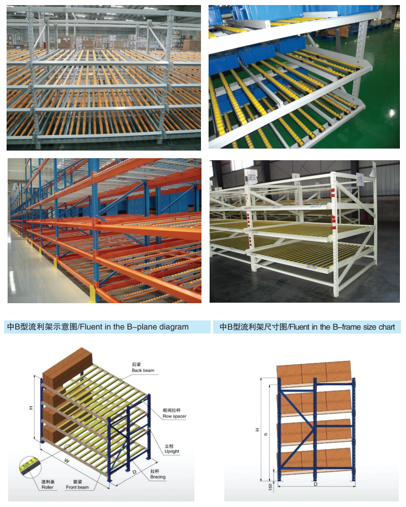 流利式貨架廣泛應(yīng)用于制造業(yè),商業(yè),配送中心,裝配車間以及出貨頻率較高的倉庫流利式貨架:采用輥輪鋁合金,鈑金等流利條,利用臺(tái)架自重實(shí)現(xiàn)先進(jìn)先出,存儲(chǔ)方便,適用于裝配線兩側(cè)配送中心等場(chǎng)所。