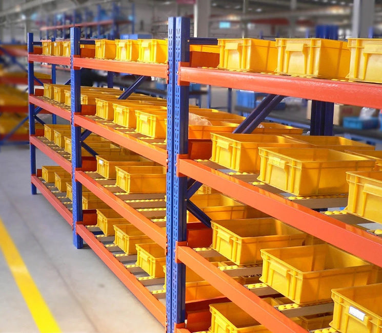流利貨架等同于流利式貨架,產(chǎn)品常由中型橫梁式貨架演變而成,通過滾道將貨物從配貨端輸送到取貨端,貨物借助重力自動(dòng)下滑,可實(shí)現(xiàn)“先進(jìn)先出”作業(yè),使用成本低,存儲(chǔ)速度快、密度大。通常使用在企業(yè)的精益生產(chǎn)流水作業(yè)。