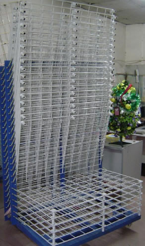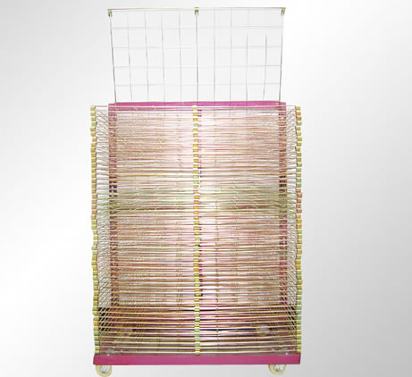千層架,又叫絲印千層架、乾燥架、千層車、晾曬架、晾紙架、網(wǎng)架、層架臺車。適用于印刷、上膠、噴漆、上色,濺鍍後的晾乾置放器材;顒邮蕉鄬泳W(wǎng)格設計,置放空間大,操作方便,節(jié)省車間、庫房面積,并可適用於所放產(chǎn)品的常溫晾乾和進焗爐高溫烘烤。
